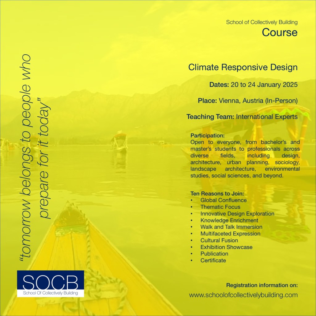 Behold the birth of the Climate Responsive Design Course – an initiative igniting a dynamic platform for global collaboration, knowledge sharing, and transformative design thinking. It’s not just a call to action; it’s a rallying cry for a sustainable and harmonious urban future.